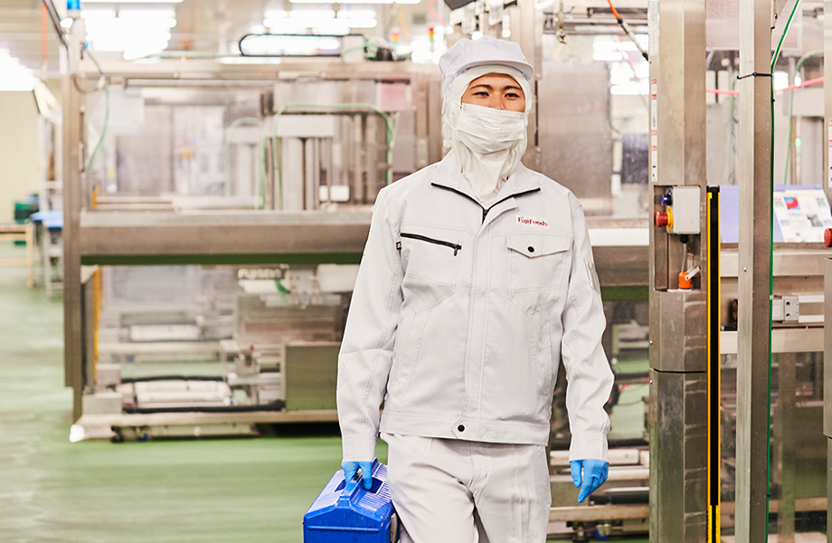 工場の機械のトラブルメンテナンス、ガスや電力などの経費削減のための計画立案、省人・省力化をして経費削減につながるような仕組みづくりをしています。現在勤務している船橋第3工場には、立ち上げから全面的に関わりました。